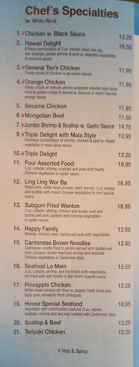 These dishes are often enjoyed during relaxed weeknight dinners or simple lunch breaks, fitting well with the friendly and unpretentious atmosphere at Ling Ling. Whether you’re sharing a large order with family or grabbing a quick, flavorful meal to go, the menu’s generous portions and familiar flavors offer a dependable and satisfying experience.